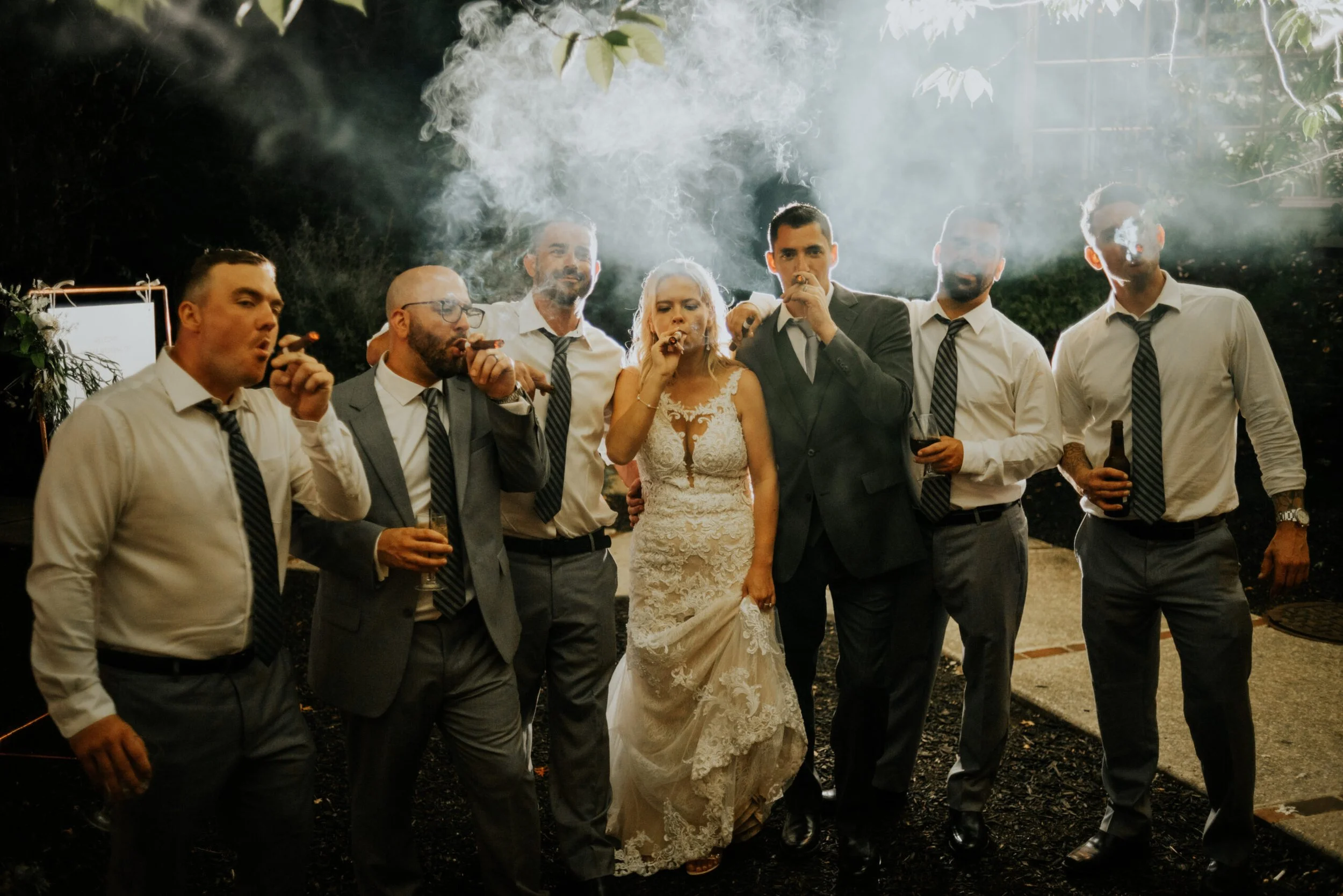 Treat cigar aficionados to the ultimate luxury with handcrafted cigar rolling stations. Guests can watch skilled artisans roll premium cigars, offering a sophisticated indulgence that adds a touch of elegance to your celebration. Whether they're seasoned smokers or first-timers, guests will savor the experience and enjoy a unique wedding favor to take home. www.themobilecigarlounge.com